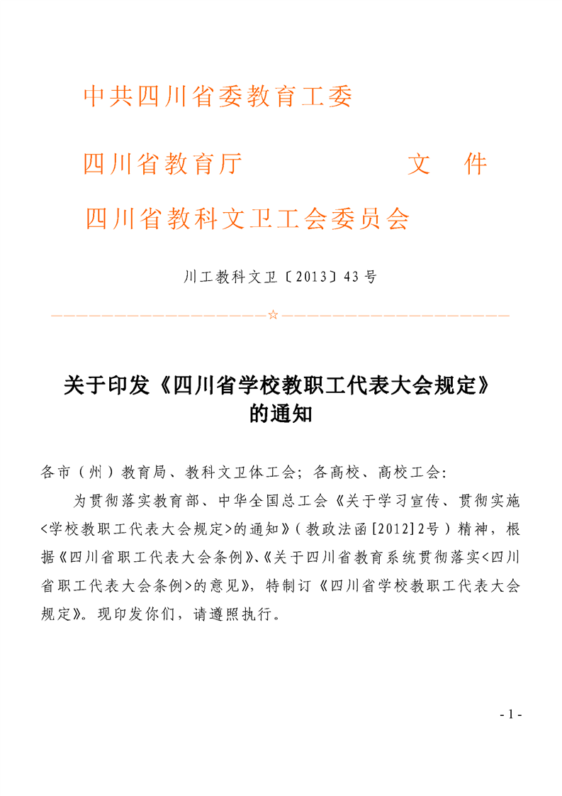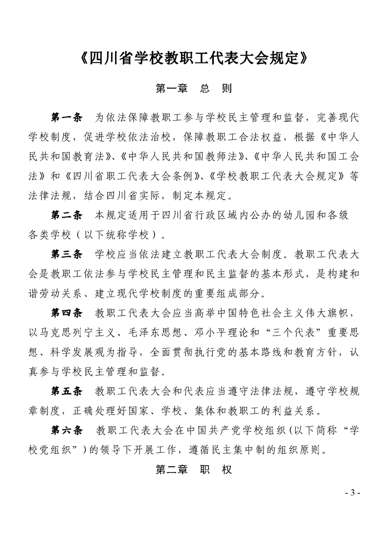 关于印发《四川省学校教职工代表大会规定》的通知