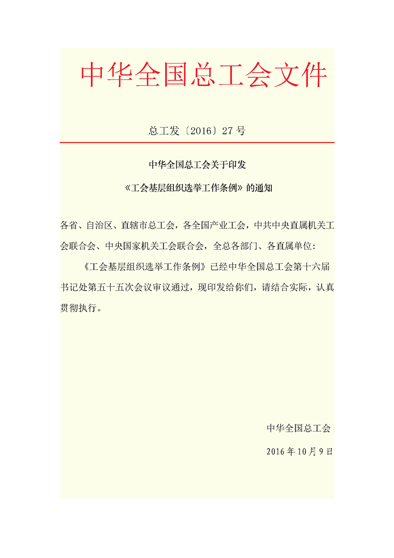 全总文件《工会基层组织选举工作条例》