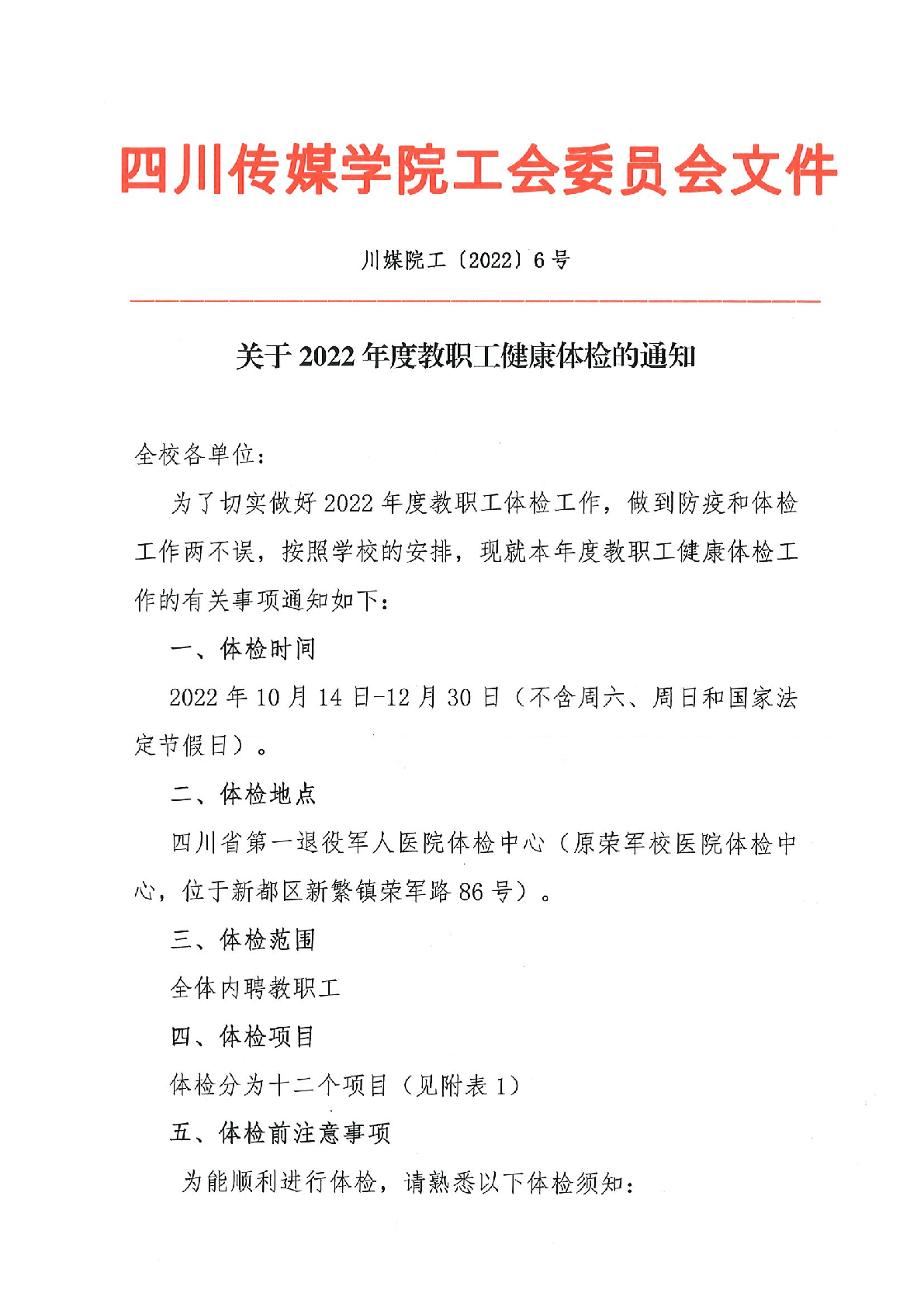 关于2022年度教职工健康体检的通知