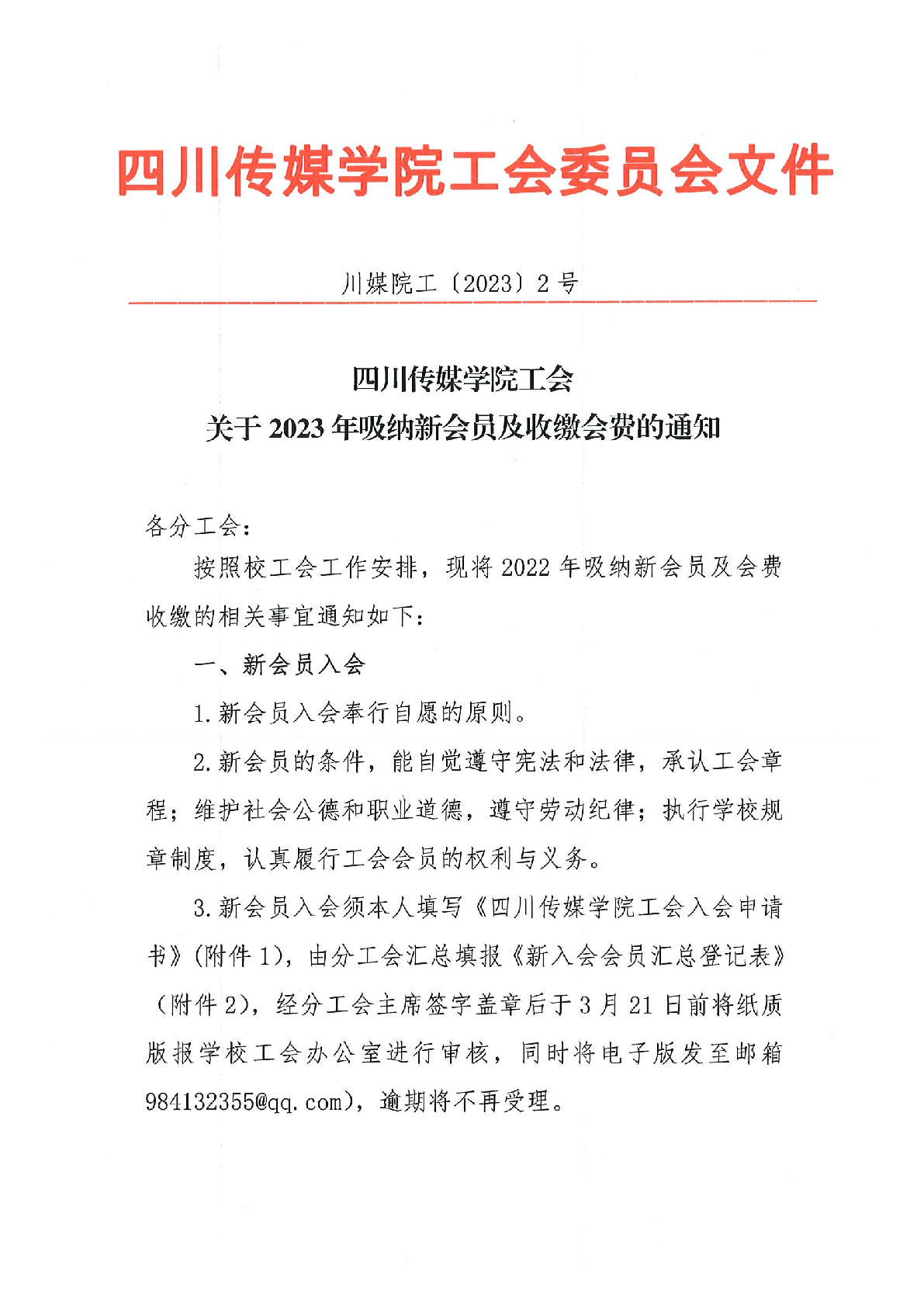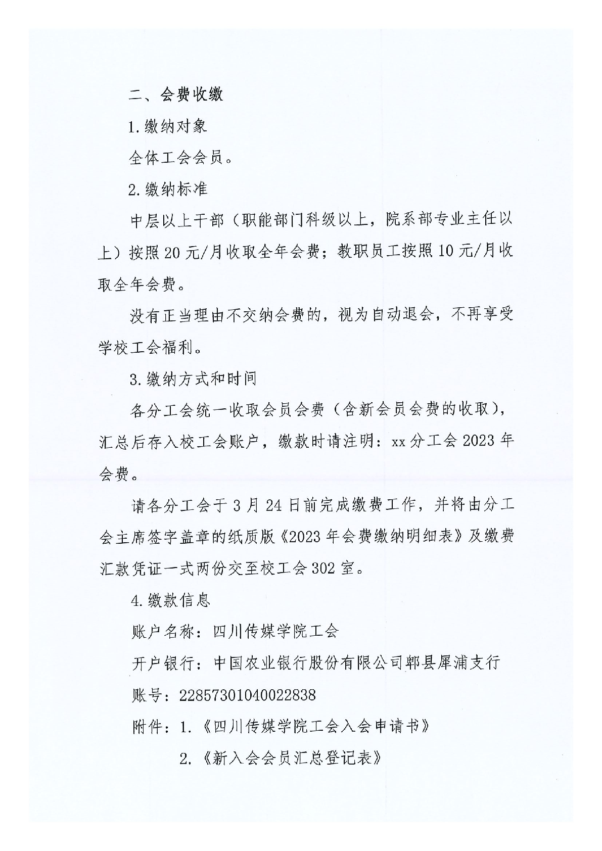四川传媒学院工会关于2023年吸纳新会员及收缴会费的通知